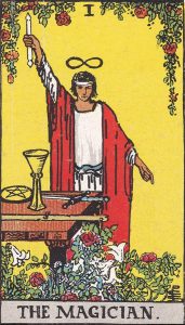 Le Bateleur à l’endroit dans le Tarot symbolise le potentiel illimité et les opportunités qui s’offrent à vous. Cette carte évoque un moment où votre habileté, votre ingéniosité et votre originalité sont à leur apogée. C’est le temps de l’action et de la création, où vous avez le pouvoir de concrétiser vos idées et vos projets. Le Bateleur vous invite à utiliser vos talents et à être confiant dans vos capacités. Il représente aussi le début d’une aventure, l’initiation d’un nouveau projet ou le commencement d’une nouvelle phase dans votre vie.
